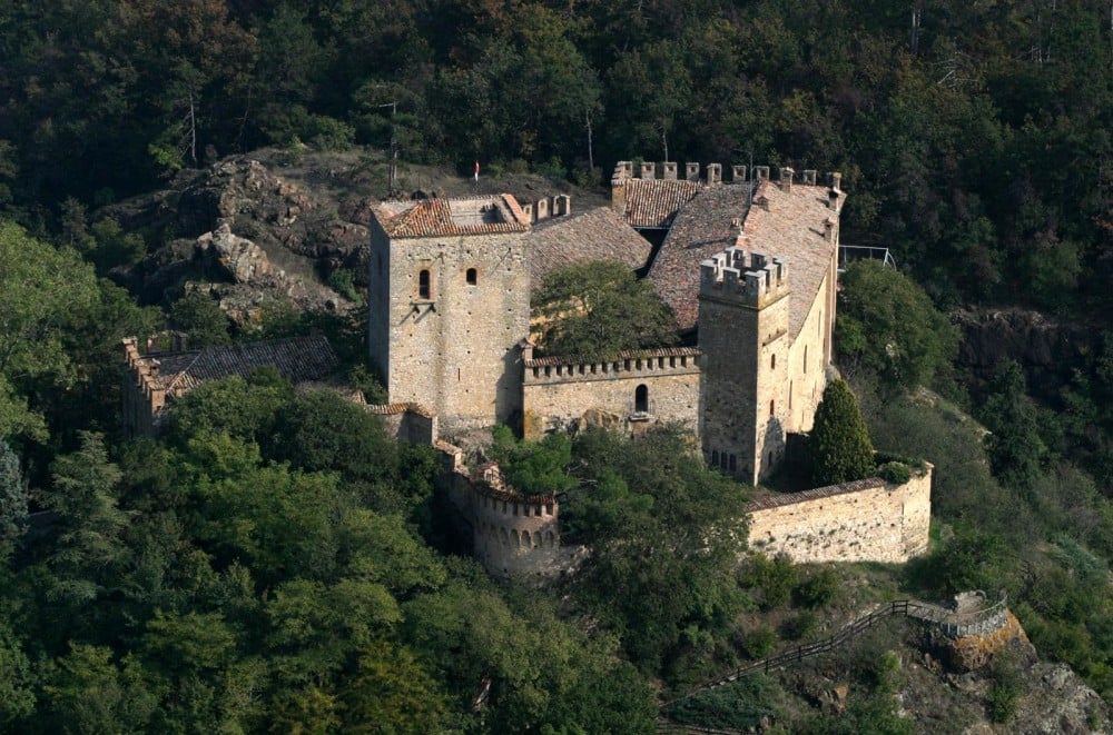 Questo affascinante castello che sorge a Langhirano, sulle prime colline di Parma, fu costruito tra il 1448 e il 1460 (sulle rovine di una precedente casaforte) da Pier Maria II de’ Rossi in onore dell’amata Bianca Pellegrini. L’edificio, infatti, doveva servire non solo come struttura difensiva, ma anche come dimora isolata per i due amanti: la funzione difensiva è attestata dalle tre cerchia di mura e dalle quattro torri angolari, la destinazione residenziale è evidente dalla ricchezza degli ornamenti, tra cui il ciclo di affreschi attribuito a Benedetto Bembo che si trova nella cosiddetta Camera d’Oro, raffigurante scene di amore cavalleresco e la celebrazione del legame tra Bianca e Pier Maria. Nell’affresco si riconoscono infatti gli stemmi dei due amati e due cuori con le frasi Digne et in aeternum (degnamente e in eterno) e Nunc et semper (ora e per sempre), a testimonianza dell’eternità del loro amore. Il castello è considerato un esempio tra i meglio conservati di architettura dei castelli in Italia, poiché unisce elementi del medioevo a elementi del Rinascimento.